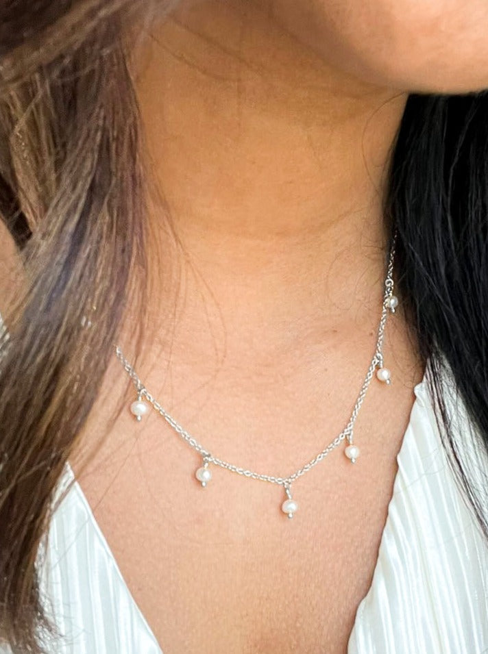 Silver and pearls are a match made in heaven, brought together beautifully in the Adora Pearl Necklace — a statement piece that emanates effortless luxury.